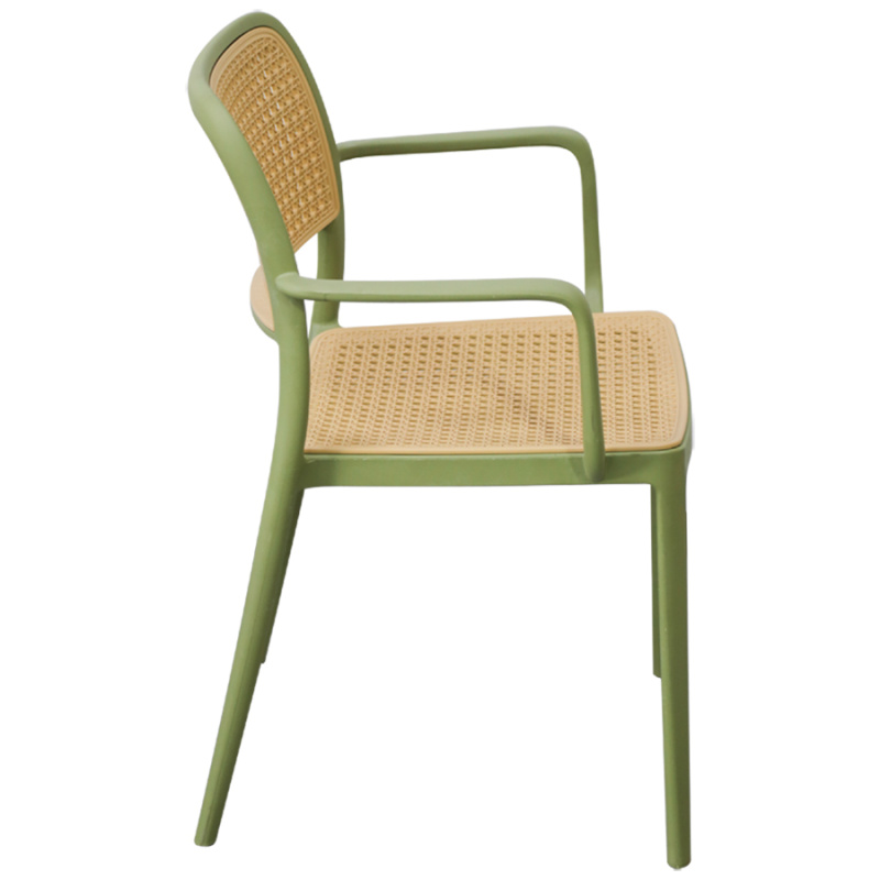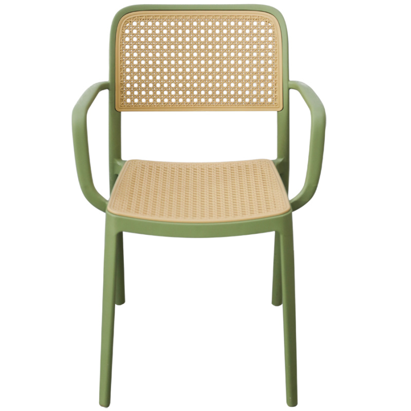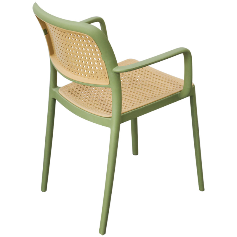 Стул S-0142A в зеленом цвете — это практичное решение для дома, дачи, летней веранды или кафе. Конструкция выполнена из прочного пластика, спинка и сиденье имеют стильное плетение, а удобные подлокотники обеспечивают дополнительный комфорт.