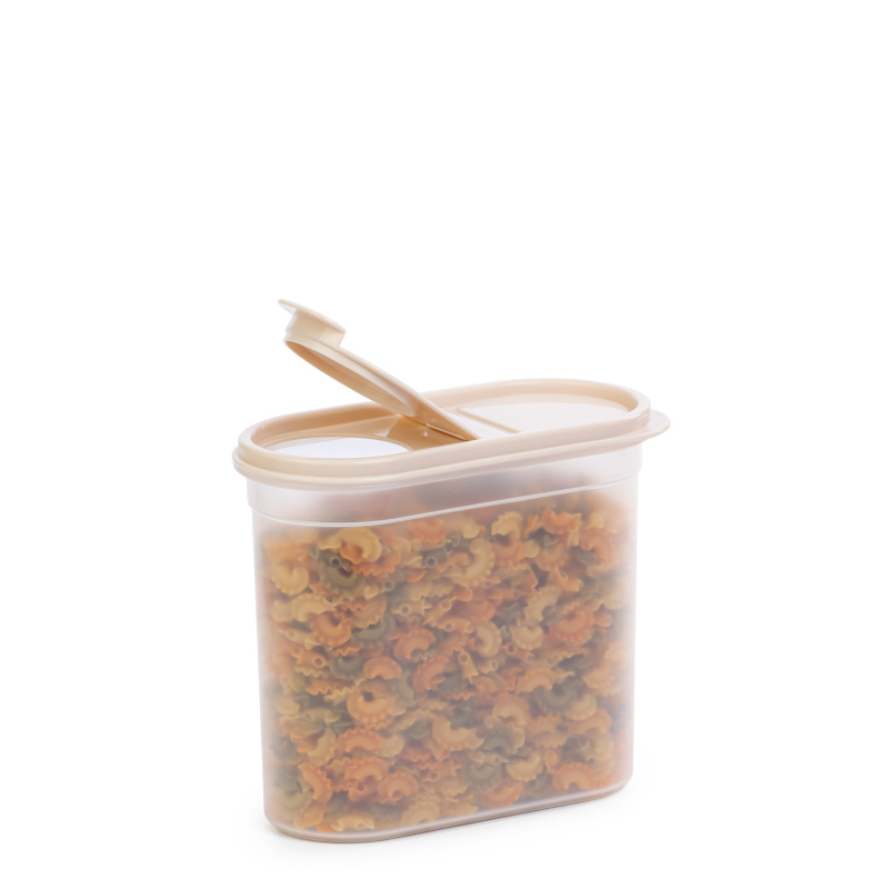 Хранение и использование различных сыпучих продуктов становится очень комфортным благодаря овальной форме ёмкости и специальной крышке. Прозрачность ёмкости позволяет видеть содержимое, а плотно прилегающая к корпусу крышка защищает содержимое от проникновения влаги и жучков. Откидная часть крышки позволяет дозировано высыпать продукт из ёмкости. Пластиковая ёмкость для сыпучих продуктов безопасна и химически нейтральна.