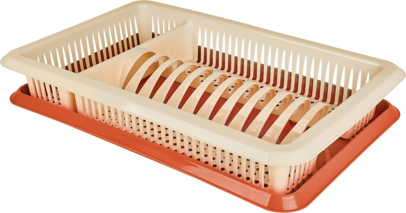 Сушилка для посуды с поддоном – удобный аксессуар, который позволяет сушить и хранить посуду на кухне. Сушилка снабжена двумя секциями: для тарелок и столовых приборов – это дает возможность организовать оптимальное хранение и сушку, а также сэкономить свободное пространство. Посуда и приборы высыхают намного быстрее благодаря дизайну с отверстиями. Сушилка имеет поддон для стока воды, за которым просто ухаживать и содержать в чистоте. Легкий, прочный, пищевой пластик прослужит долгие годы и будет безопасен для здоровья. Можно использоваться как в кухонном шкафу, так и выставить на рабочую поверхность.
