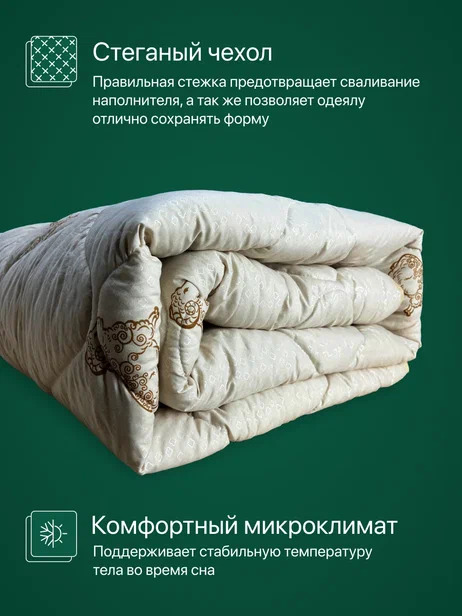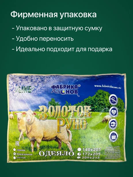 Погрузитесь в мягкое облако комфорта с одеялом "Золотое Руно"! Сочетание высококачественной ткани поплекс с уникальным наполнителем из термоскрепленных волокон овечьей шерсти и полиэстера обеспечивает невероятное ощущение тепла и уюта. Плотность наполнителя 300 г/кв.м создает идеальный баланс между легкостью и теплом, делая это одеяло идеальным выбором на все сезоны. Позвольте себе роскошный отдых и комфортный сон каждую ночь с одеялом "Золотое Руно" от Фабрики Снов!