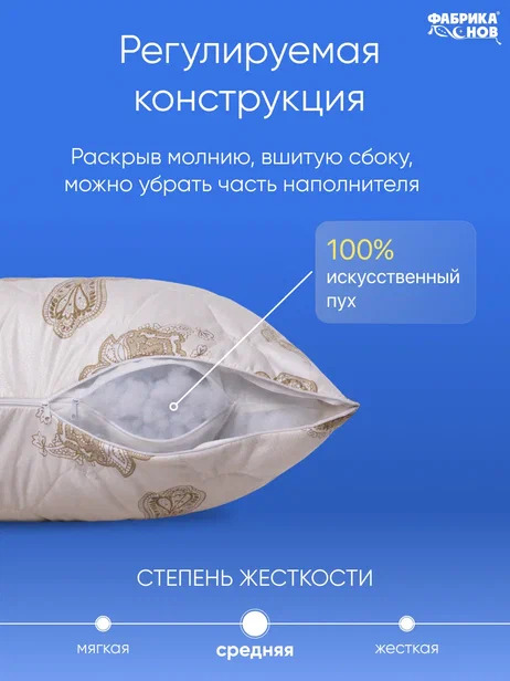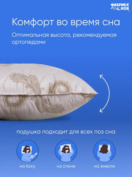 Подушка оригинальной коллекции “ Лебединая нежность ”выполнена в поплексе с наполнителем - искусственный аналог лебяжьего пуха, сочетающий в себе плюсы натурального пуха, обладающий своими исключительными особенностями: гипоаллергенность (наполнитель не является аллергеном), антибактериальность (не заведутся пылевые клещи, грибки и плесень), отсутствие запахов (не имеет собственного запаха и не впитывает посторонние ароматы), легкость, упругость наполнителя (за счет особой скрученности волокон, не сбивается в комья) Подушка идеально подходит для всей семьи, позволяя регулировать поддержку в зависимости от возраста и положения во время сна.