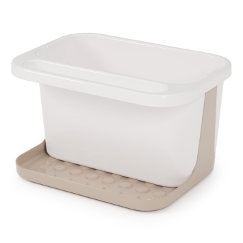 Подставка для моющих средств в бело-бежевом цвете — удобный органайзер для кухни или ванной комнаты. Позволяет аккуратно хранить губки, щётки, бутылки с моющими средствами и другие принадлежности. Оснащена поддоном для стекания воды, что помогает поддерживать чистоту и порядок.